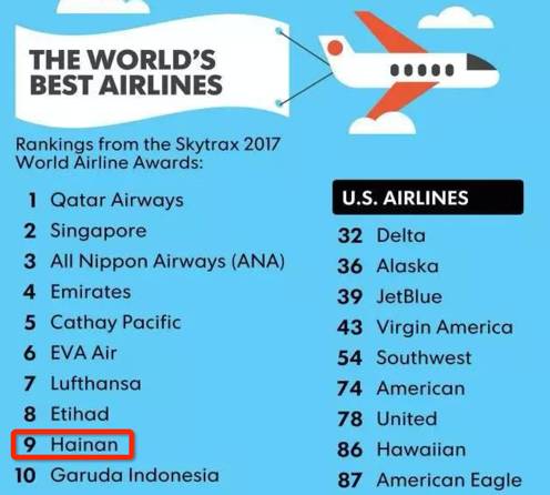 这是历史的一刻,是中国航企首次出现在世界前十阵营中的辉煌一刻!意味着,从今天开始,中国海南航空将与世界顶级的阿联酋航空、卡塔尔航空处于同一阵营。